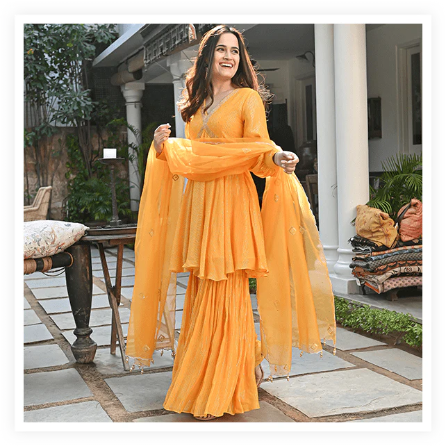 ⁕ Haldi Outfit & Haldi Lehenga Choli ⁕ Lehenga Choli $ 105.63 Lehenga Outfit $ 950.66 Shrara Suit $ 126.75 Shrara Suit $ 158.44 Gown Outfit $ 190.13 Gown $ 105.63 Anarkali Suit $ 137.32 Lehenga Choli $ 211.26 Anarkali Suit$ 158.44 🛍️Buy Now 🛒