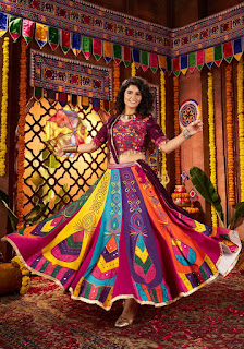 Pastel shades and neon colors are trending for Navratri 2026, giving the traditional Chaniya Choli a modern and vibrant touch. The tradition of wearing different colors for all nine days of Navratri continues to grow in popularity. At the same time, fusion styles are becoming more prominent in fashion trends. Women now pair Indo-western cholis with long skirts or choose cape-style cholis for a stylish, modern look.